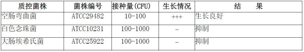 按标签用法制备培养基,接种以下质控菌株,放置42±1℃微需氧培养24-48小时。