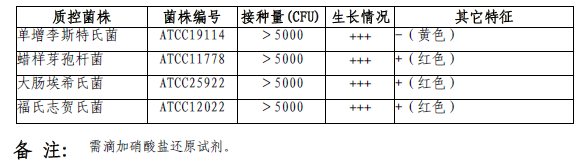 按标签用法制备培养基,接种以下质控菌株,放置35±1℃需氧培养24±2小时。