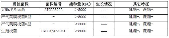 按标签用法制备培养基,接种以下质控菌株,放置36±1℃厌氧培养18-24小时。