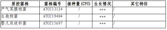 按标签用法制备培养基,接种以下质控菌株,放置36±1℃厌氧培养48-72小时。