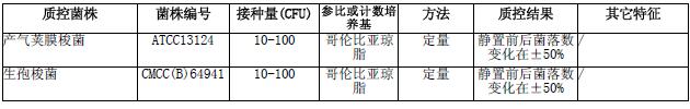 按标签用法制备培养基,接种以下质控菌株,放置36±1℃厌氧培养45分钟。