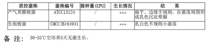 按标签用法制备培养基,接种以下质控菌株,放置35±1℃厌氧培养48小时。