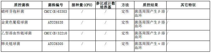 按标签用法制备培养基,接种以下质控菌株,放置36±1℃需氧培养18-24小时。