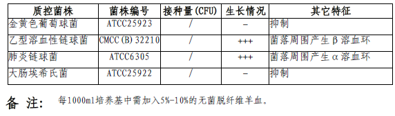 蛋白胨和大豆蛋白胨提供微生物生长所需的碳氮源、维生素和生长因子;氯化钠维持均衡的渗透压;麦芽糖为可发酵的糖类;抑菌剂可抑制非A群链球菌的细菌生长;琼脂为培养基的凝固剂。