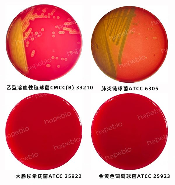 称取本品38.3g,溶解于1000ml蒸馏水中,115℃高压灭菌20分钟,冷至50℃左右时,无菌加入5-10%的脱纤维羊血,混匀,倾入无菌平皿。