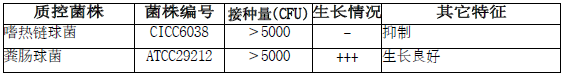 按标签用法制备培养基,接种以下质控菌株,放置36±1℃需氧培养48小时。