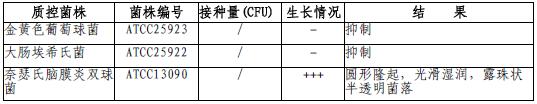 按标签用法制备培养基,接种以下质控菌株,放置36±1℃需氧培养18-24小时。