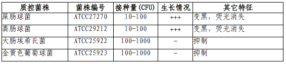 按标签用法制备培养基,接种以下质控菌株,放置35±2℃需氧培养24±2小时。