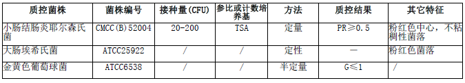 需使用标准菌株CMCC(B)52204进行培养基质量控制,生长率应≥70%,且菌落特征符合预期(圆形、无色、不粘稠)[9]。
