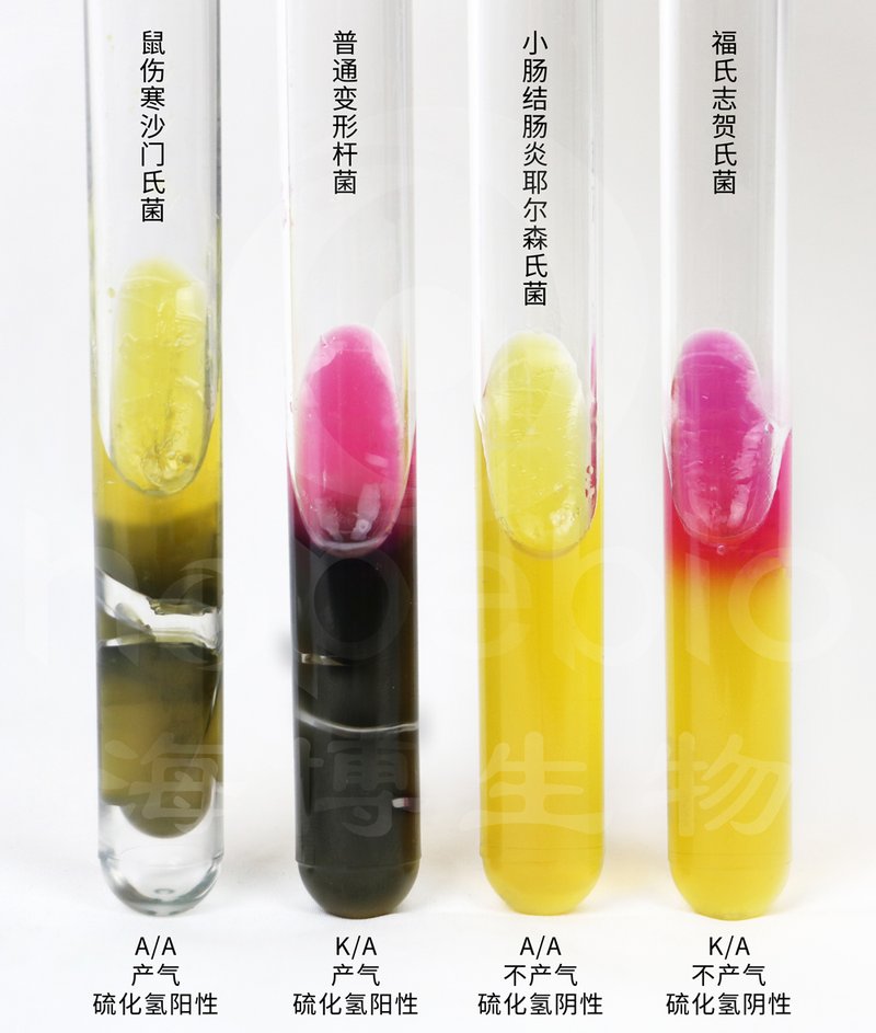 注意事项:接种时先在斜面划线,再与底层穿刺。由于培养36-48h后小肠结肠炎耶尔森菌会产碱,造成斜面变红,因此应注意培养时效,在培养24h时观察结果。