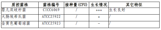 按标签用法制备培养基,接种以下质控菌株,放置36±1℃厌氧培养24-48小时。