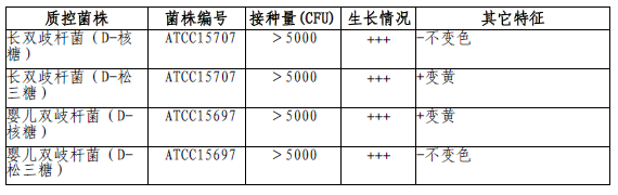 双歧杆菌生化用基础培养基微生物灵敏度试验:按标签用法制备培养基,接种以下质控菌株,放置37℃厌氧培养18-24小时。