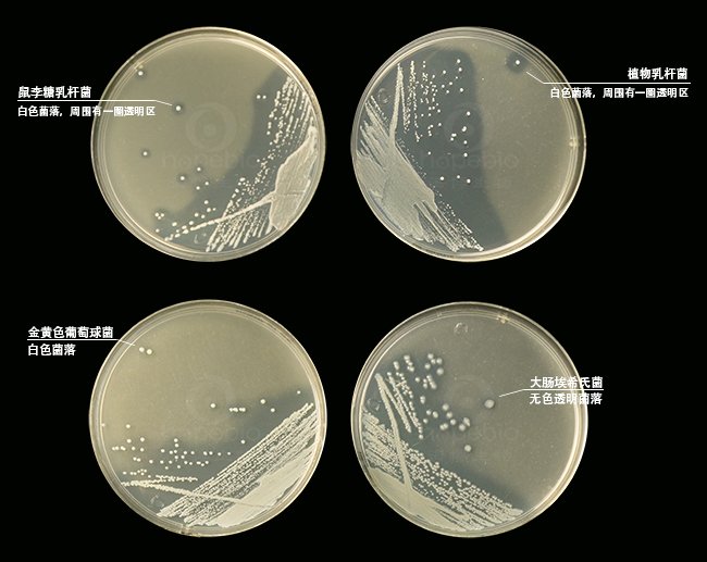 30℃培养3-7天,典型乳酸菌菌落为白色,其周围有一圈透明区。