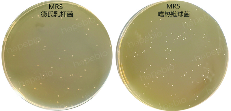 MRS上德氏乳杆菌和嗜热链球菌的菌落形态: