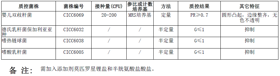 蛋白胨、牛肉浸粉、酵母浸粉在培养基中作为基础营养物质提供细菌生长所需的氮源、碳源和其他的生长因子;葡萄糖为可发酵糖类;磷酸氢二钾为pH缓冲剂;柠檬酸三铵、醋酸钠、硫酸镁、硫酸锰和吐温80为培养各种乳酸菌提供生长因子,其成分还能抑制某些杂菌并中和细胞毒性物质,为乳酸菌提供一个良好的生长环境;莫匹罗星锂盐抑制除双歧杆菌外的其他乳酸菌的生长;半胱氨酸盐酸盐具有降低氧化还原电位的作用,防止过氧化物的积累对某些菌产生毒性,有利于厌氧菌的生长;琼脂为培养基的凝固剂。