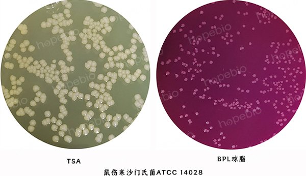 胰蛋白胨提供微生物生长所需的碳源、氮源;氯化钠维持均衡的渗透压;乳糖为可发酵糖类;苯酚红和灿烂绿为酸碱指示剂,苯酚红pH 6.8(黄)-8.0(红),灿烂绿pH 0.0(黄)-2.6(绿);琼脂是培养基的凝固剂。典型的沙门氏菌不发酵乳糖,利用培养基中的蛋白胨产碱,使培养基变红。