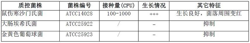 按标签用法制备培养基,接种以下质控菌株,放置36℃需氧培养18-24小时。