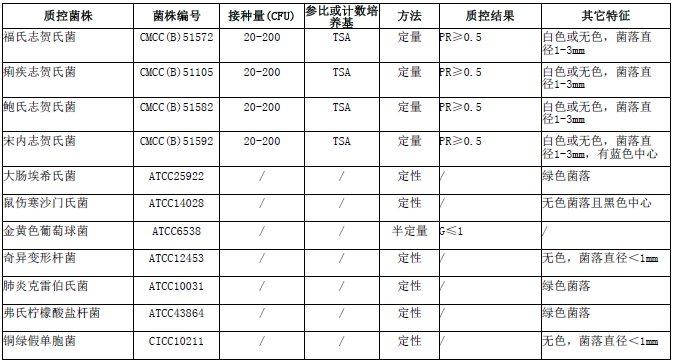 志贺氏菌显色培养基是青岛海博生物公司改良的培养基,用于食品、病人粪便样品中志贺氏菌的快速检测。志贺氏菌显白色或无色,有些宋内氏志贺氏菌有蓝色中心;大肠杆菌和大肠菌群显绿色或黄色;沙门氏菌显黄色或无色并有黑色中心;其它细菌显蓝绿色或黄色。变形杆菌和铜绿假单胞菌基本不生长;是一种很理想的快速检测培养基。