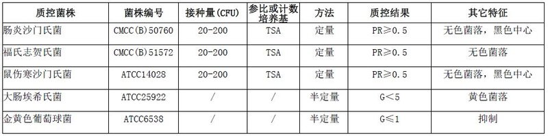 按标签用法制备培养基,接种以下质控菌株,放置36℃需氧培养24小时。