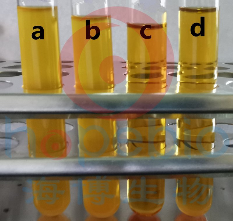 a:金黄色葡萄球菌ATCC 6538;b:金黄色葡萄球菌ATCC 25923;c:大肠埃希氏菌ATCC 25922;d无菌对照