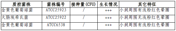 按标签用法制备培养基,接种以下质控菌株,放置35℃需氧培养4小时。