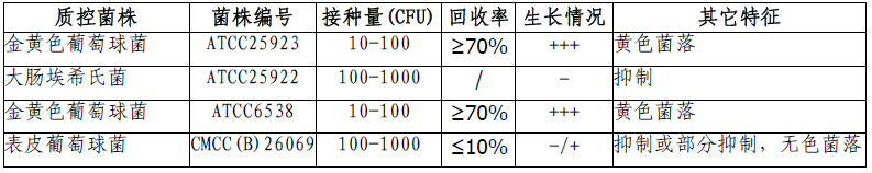 按标签用法制备培养基,接种以下质控菌株,放置36±1℃需氧培养24-48小时。