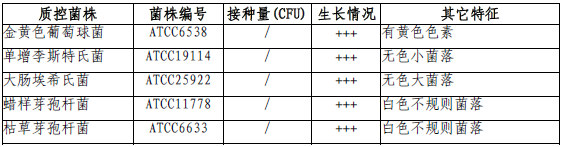 按标签用法制备培养基,接种以下质控菌株,放置36±1℃需氧培养18-24小时。