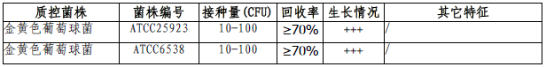 按标签用法制备培养基,接种以下质控菌株,放置36±1℃需氧培养48小时。