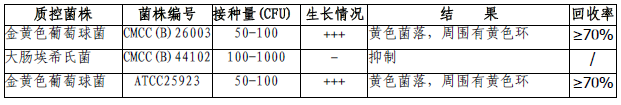 甘露醇氯化钠琼脂平板(9cm)(2-25℃)微生物灵敏度试验: