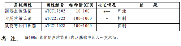 多粘菌素B(2.5万单位)微生物灵敏度试验: