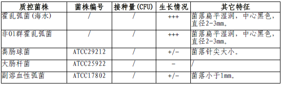 按标签用法制备培养基,接种以下质控菌株,放置36±1℃需氧培养14-18小时。