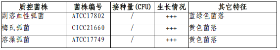 副溶血性弧菌琼脂微生物质控结果: