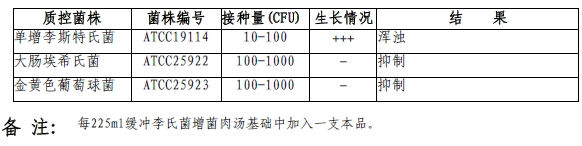 用途:每支添加于225ml 缓冲李氏菌增菌肉汤基础(BLEB)中