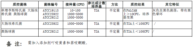按标签用法制备培养基,接种以下质控菌株,放置30±1℃需氧培养18-24小时。