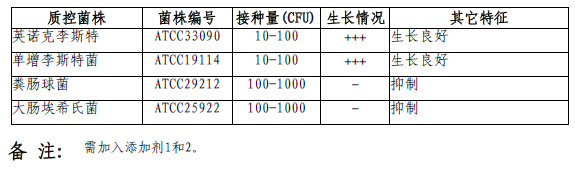 按标签用法制备培养基,接种以下质控菌株,放置30±2℃需氧培养22±2小时。