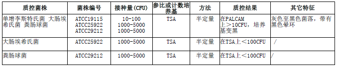 按标签用法制备培养基,接种以下质控菌株,放置30±1℃需氧培养18-24小时。
