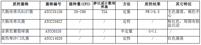 改良山梨醇麦康凯(CT-SMAC)琼脂微生物质控结果: