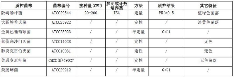 按标签用法制备培养基,接种以下质控菌株,放置36±1℃需氧培养22-26小时。