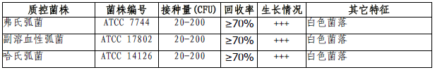 按标签用法制备培养基,接种以下质控菌株,放置20-25℃需氧培养40-72小时。 注:回收率计算时,用TSA琼脂做对照培养基。