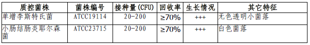 按标签用法制备培养基,接种以下质控菌株,放置21±1℃需氧培养25±1小时。 注:回收率计算时,用TSA琼脂做对照培养基。