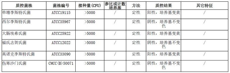 西尔李斯特氏菌、福氏志贺氏菌阴性、培养基不变黄。