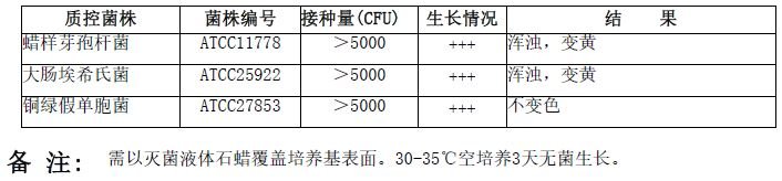 接种以下质控菌株,放置35℃需氧培养24小时。