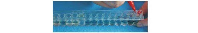 3.接种完后做好标记,盖上盖子,放入底托中,放置36℃±1℃培养。