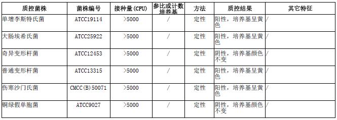 接种以下质控菌株,放置36±1℃需氧培养24-48小时。