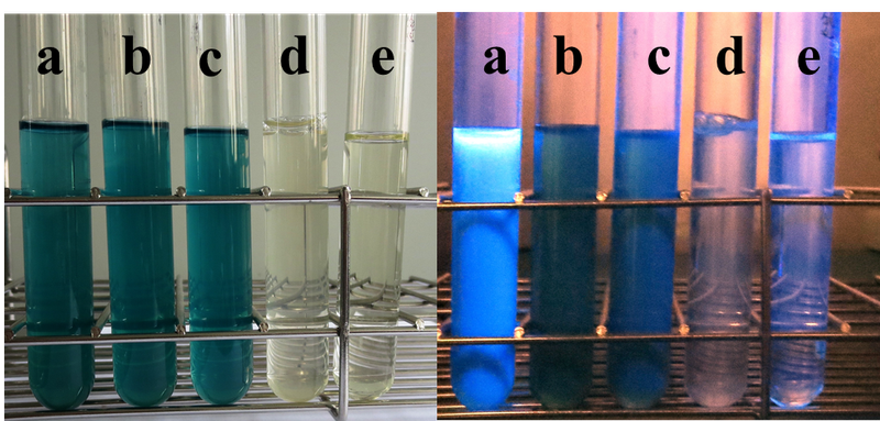 结果判断: 1. 阴性反应:液体没有颜色变化(淡黄色)。 2. 总大肠菌群阳性:液体颜色变为蓝绿色。 3. 大肠杆菌阳性: 荧光试验:在366nm长波紫外线灯下,蓝绿色液体显浅蓝色荧光,证实大肠杆菌的存在(MUG反应)。 进一步确证实验(可选): 用2.5ml KOVAC试剂(吲哚反应)覆盖容器中的液体。出现红色圆环证实大肠杆菌的存在。