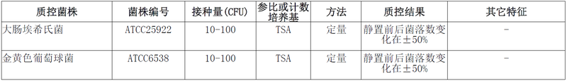 按标签用法制备培养基,接种以下质控菌株,放置20-25℃需氧培养45分钟。
