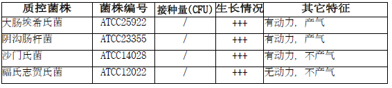 按标签用法制备培养基,接种以下质控菌株,放置36±1℃需氧培养6-8小时。
