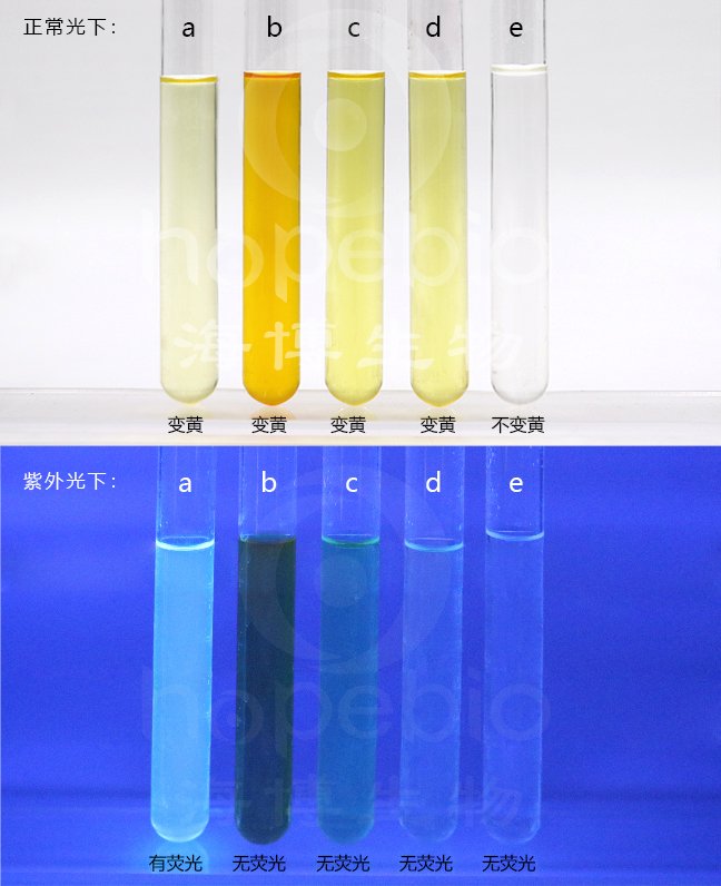3. 观察显色(黄色)和荧光反应