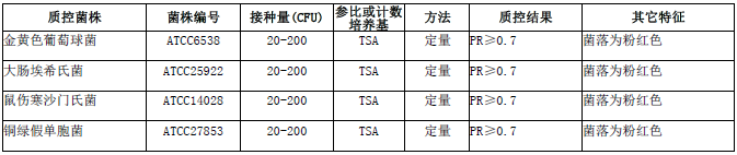 按标签用法制备培养基,接种以下质控菌株,放置36±1℃需氧培养48±2小时。
