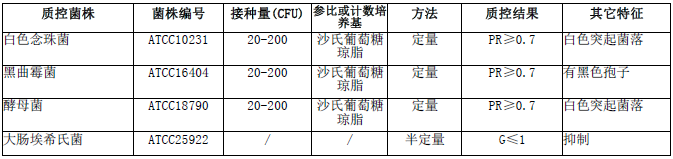 按标签用法制备培养基,接种以下质控菌株,放置28±1℃需氧培养72±2小时。